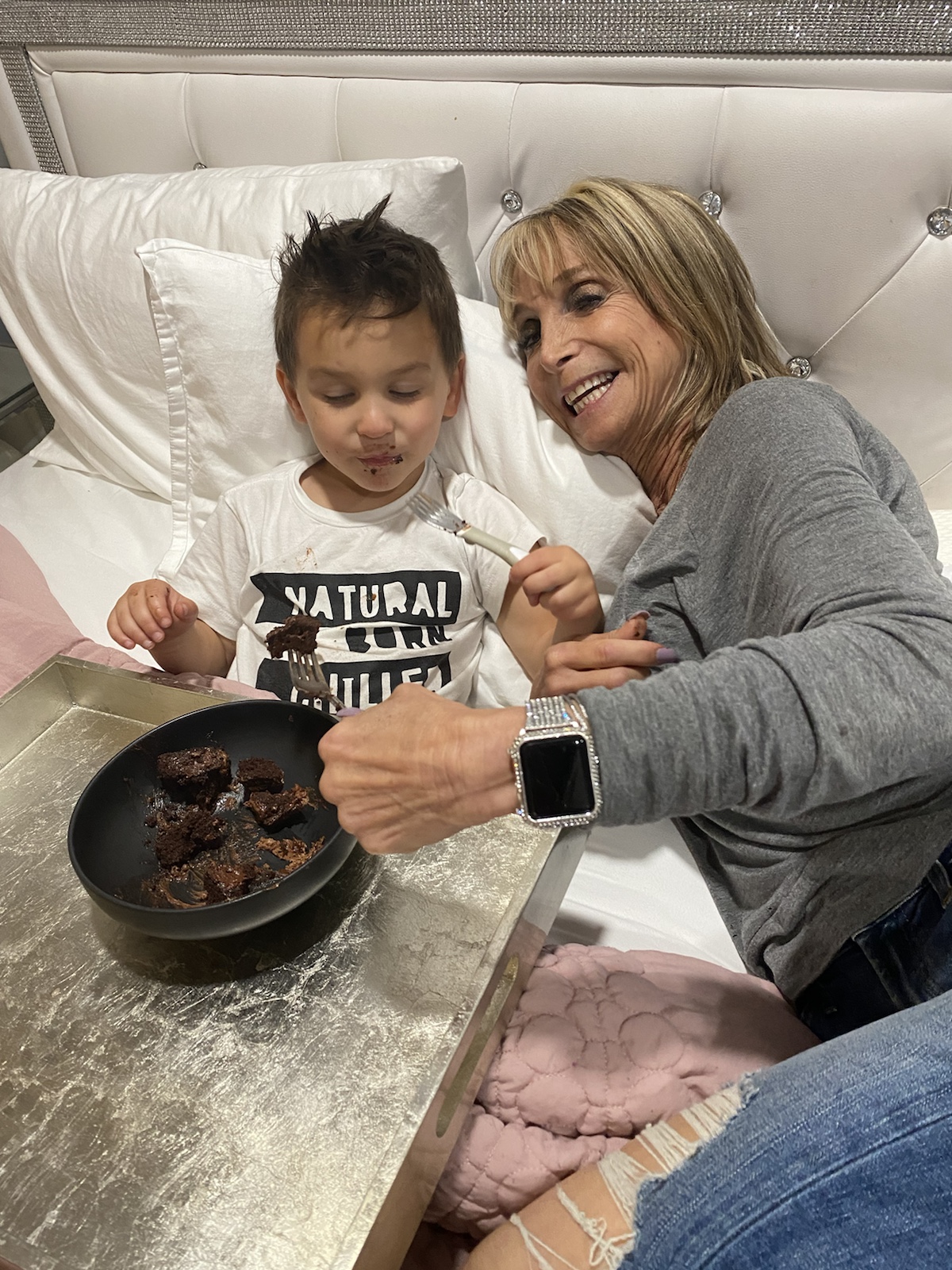 Then there is my first grandchild  Shay who brings me joy and happiness when I am with him. He calls me Gamzey. He loves to come in my bed and watch his favorite shows with me. So, for a year, he came down to Gamzey’s room and made me smile from ear to ear.
